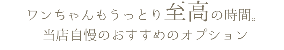 スキンケアとビューティケアが同時に出来る全身ボディサ プリメントパックです。しかも!ワンちゃんの毛や皮膚の 状態から3種類のその子に合ったパックを施させていただ きます。
