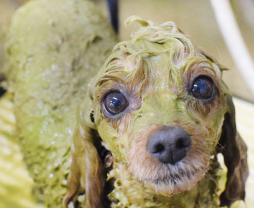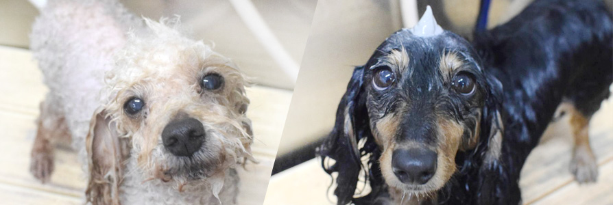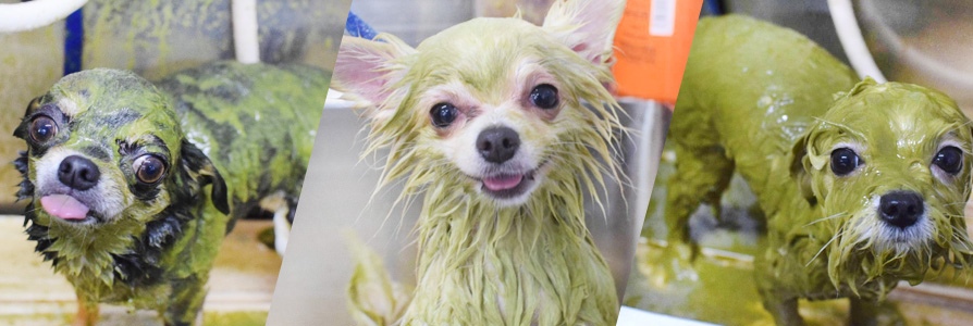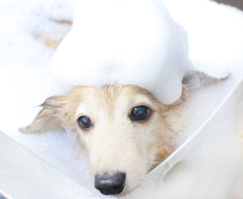 ふんわりやわらかな泡がワンちゃんをやさしく包みこみ、 つるつるふわふわに仕上げます。